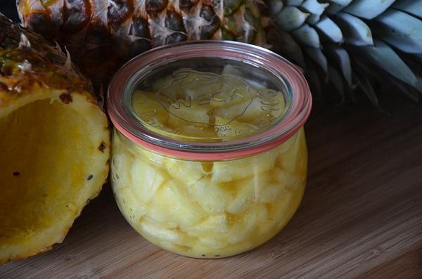 • Giet het suikerwater over de stukjes ananas in de weckpot.