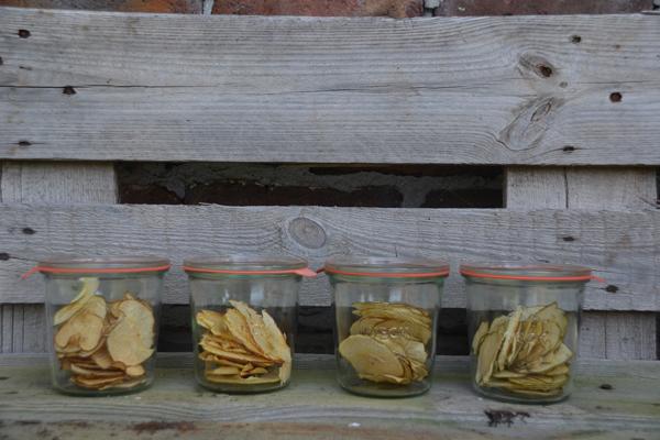 Het beste wordt gedroogd voedsel luchtdicht verpakt met behulp van een vacumeersysteem maar ook weckpotten of kunststof voorraaddozen die luchtdicht afgesloten kunnen worden kunnen gebruikt worden.