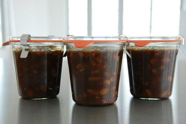 Een heerlijke perenchutney met uien, kaneelstokjes en kruidnagel.