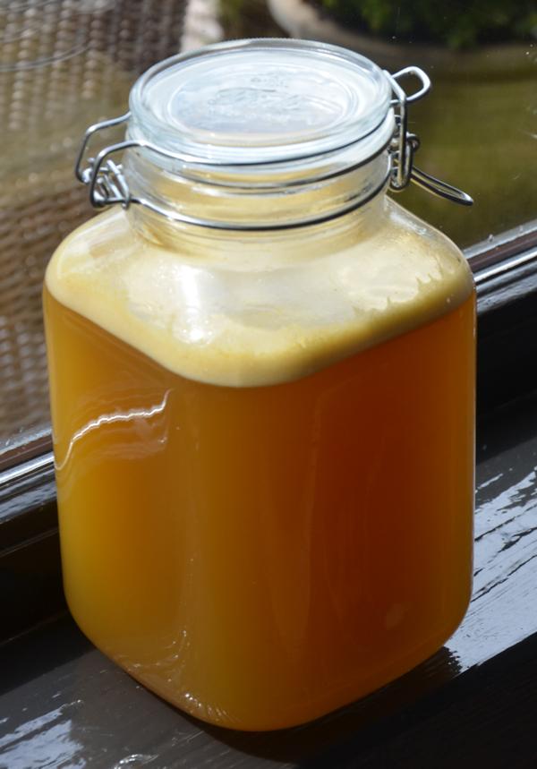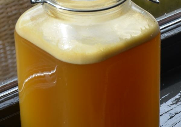 - Zeef het mengsel door een neteldoek en vang het sap op.