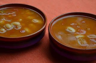Deze soep heb ik gemaakt van allerlei groenten die ik nog over had. Ik heb zelfs sla uit eigen tuin gebruikt. Ik heb de soep geserveerd met zelfgemaakte croutons.