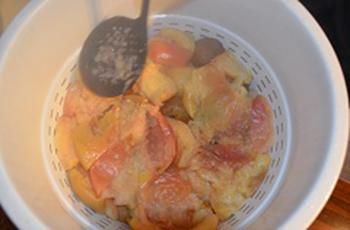 - Open de ontsapper en druk het fruit aan met een siliconen lepel.
