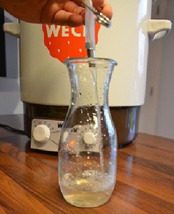 - Laat de weckketel en ontsapper volledig afkoelen voordat je het water verwijdert.