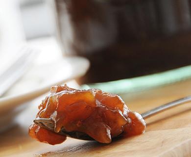 Deze jam is heerlijk op de boterham maar kan ook gebruikt worden om sauzen of jus nog meer smaak te geven. Met de hoeveelheden in dit recept maak je 800 ml jam.
