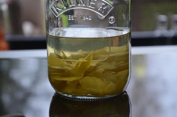 • Zeef de lemon sour met behulp van een flessentrechter en een neteldoek.
