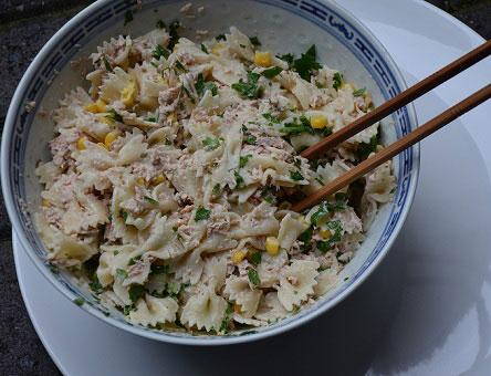 Heerlijke koude pastasalade met tonijn. Ideaal als voorgerechtje, tussendoortje of bij de BBQ