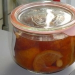 • Leg de stukken peer in gesteriliseerde weckpotten. Overgiet de peren met de gezeefde wijnsaus.