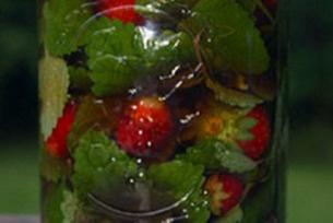 - Doe de verse blaadjes citroenmelisse samen met de azijn en de aardbeien in een afsluitbare glazen pot. Laat dit 1 week afgesloten in een donkere plaats trekken.