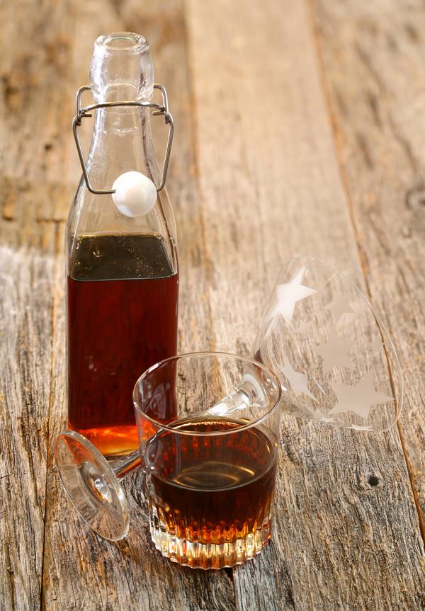 - Voeg het vanille-, amandelextract en de vodka toe. Roer goed door en doe de amaretto met behulp van een flessentrechter in een leuke fles. Laat de amaretto een weekje trekken op een koele en donkere plaats en genieten maar......