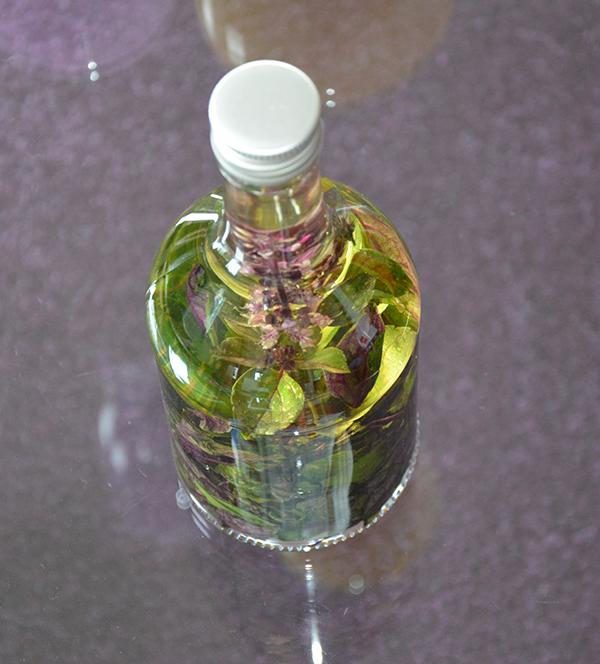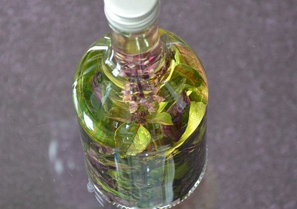 - Neem een goed af te sluiten fles en doe hier de olie in. Voeg nu de basilicum toe aan de olie en laat de olie afgesloten maximaal 1 week staan. Anders kunnen de basilicumblaadjes gaan rotten.