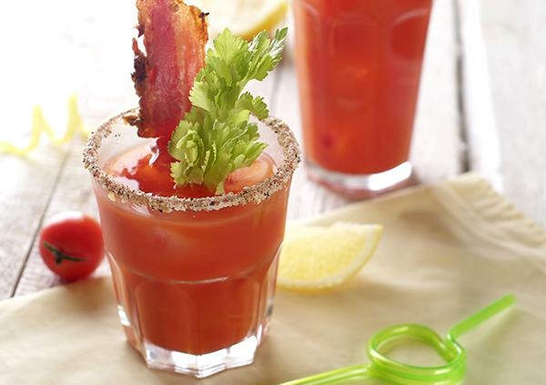 - Schud goed en schenk de bloody mary over het ijs. Maak de cocktail af een blaadje munt als u dit heeft.