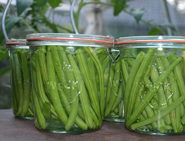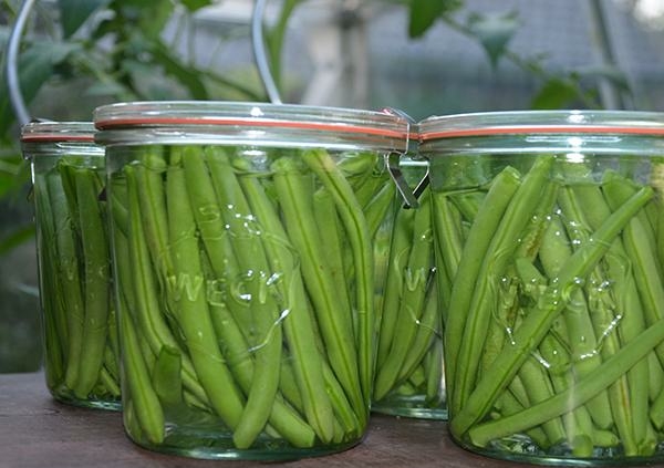 • Vul gesteriliseerde weckpotten met de sperziebonen. Vul de weckpotten aan met vers water en voeg wat zout toe.