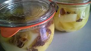 Pluk de walnoten als ze nog groen zijn en bijna geen zwarte plakjes vertonen. Meestal is dat rond half juni tot begin juli. Ik heb de notenwijn in beugelflessen bewaard.
