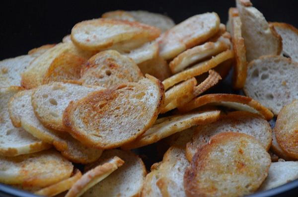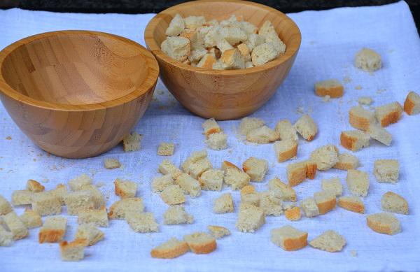 - Zet de voedseldroger of de oven op 65 graden. Leg de broodstukjes op de rasters en droog ze voor 1 tot 2 uur. De droogtijd is afhankelijk van de dikte en grootte van de croutons.