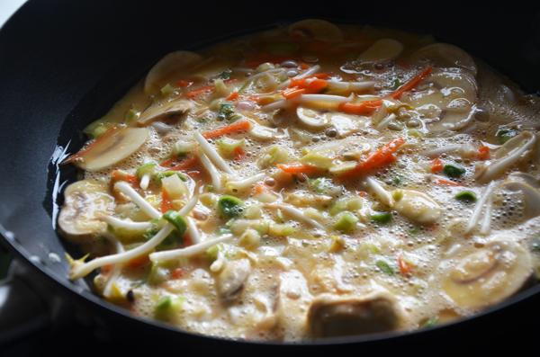 - Voeg de boter toe aan de saus tot het volledig gesmolten is.