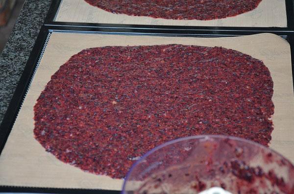 - Leg de paraflexxsheets of droogmatjes op de laden in de voedseldroger. Giet de vruchten-moes in het midden op uw paraflexxsheet of droogmatje. Beweeg de lade heen en weer waardoor de moes zich gelijkmatig verdeeld.
