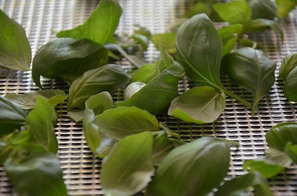 • Leg de basilicumblaadjes op de neteldoeken en zet uw roosters in uw voedseldroger.