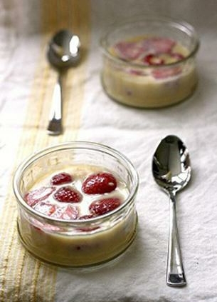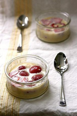 - Laat de coulis afkoelen en zeef de coulis met behulp van een vergiet met daarin een neteldoek gelegd. Vul de weckpotjes voor 3/4 met yoghurt en schep er de afgekoelde coulis over.