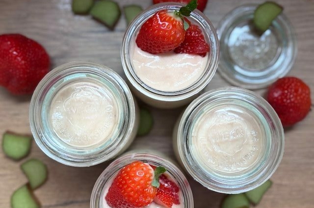 - Verdeel de pudding over 4 schaaltjes. Laat de pudding afkoelen en zet de schaaltjes voor minimaal een half uur in de koelkast. Strooi een halve eetlepel kandijsuiker of bruine basterdsuiker over elk schaaltje. Laat de suiker karameliseren mbv een crème brûlée brander of zet de schaaltjes even onder de grill.