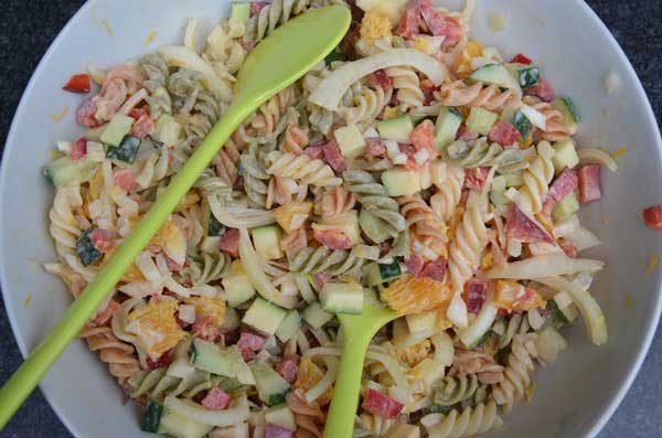 - Kook pastaslierten of maak de courgettepasta. Wij kozen voor een combinatie: pasta en courgette. TIP/ Hou je niet van rauwe courgettepasta? Doe de slierten met een beetje water in een potje voor de microgolf en plaats deze een 3-5tal minuten in microgolfoven.