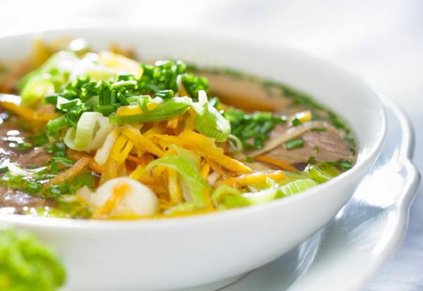 - Verhit de boter in een pan en bak fijngesneden ui glazig. Voeg alle groenten toe en laat de groenten 5 minuten bakken. Voeg nu de groentebouillon toen en laat de soep 20 minuten, op een zacht vuur, koken.