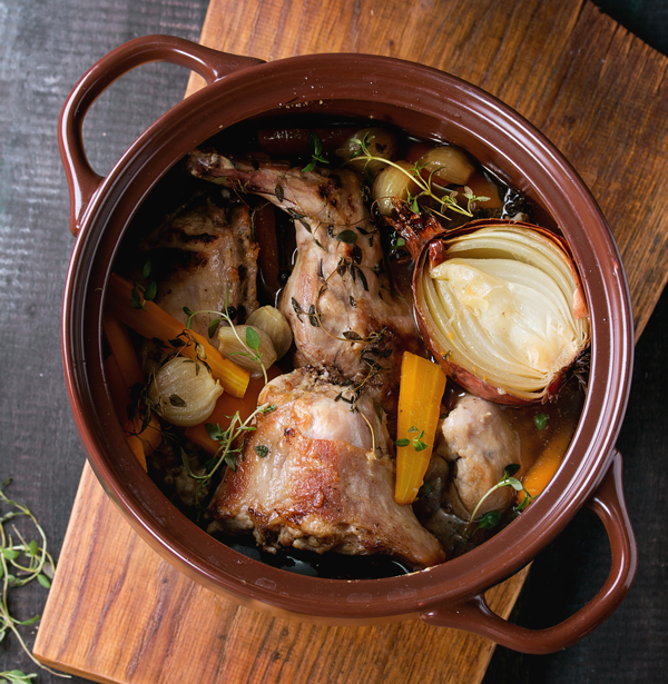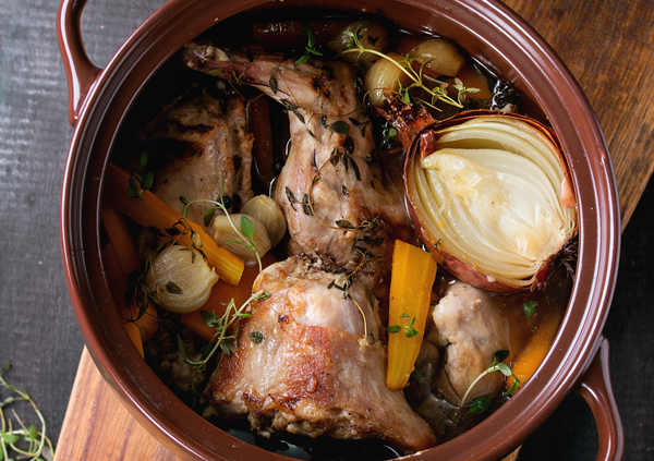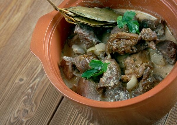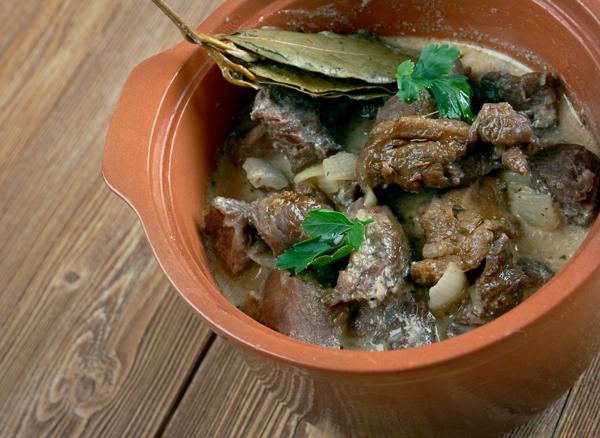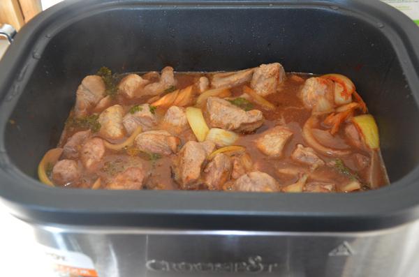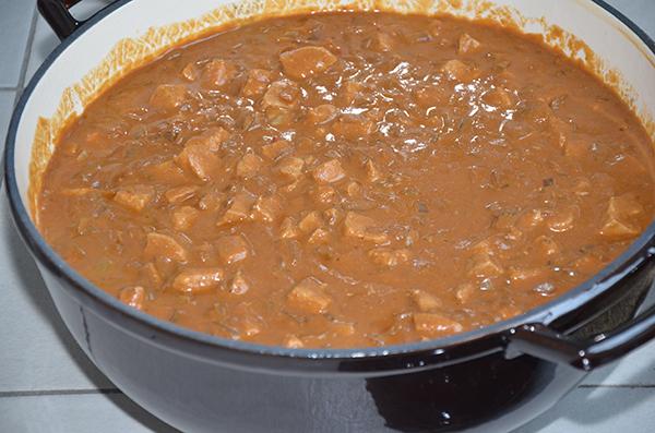- Meng de bouillon met de tomatenpuree en appelstroop en voeg toe aan het vlees. Laat het vlees nog 10 minuten zachtjes koken.