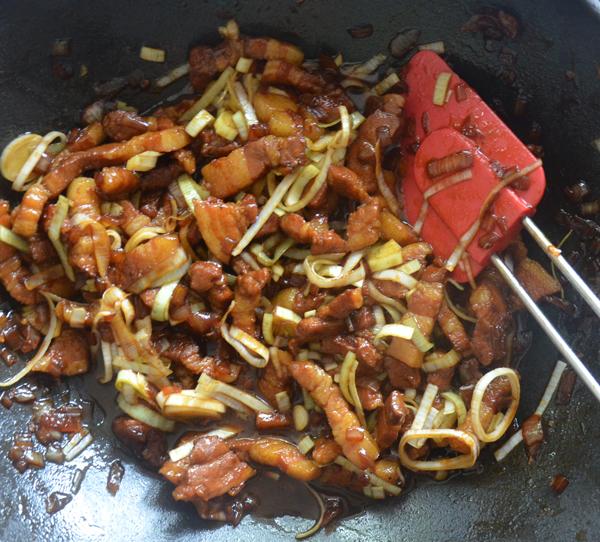 - Bind de babi pangang met maïzena. Laat de atjar tjampoer uitlekken. Schep het in een schaal en schep er de babi pangang over. (Dit recept wecken? Sla deze stap dan over.)