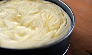 - Giet het kwarkmengsel op de taartbodem en strijk het glad. Laat de kwarktaart ongeveer 4 uur in de koelkast opstijven. Maak de springvorm open en verwijder voorzichtig het bakpapier.