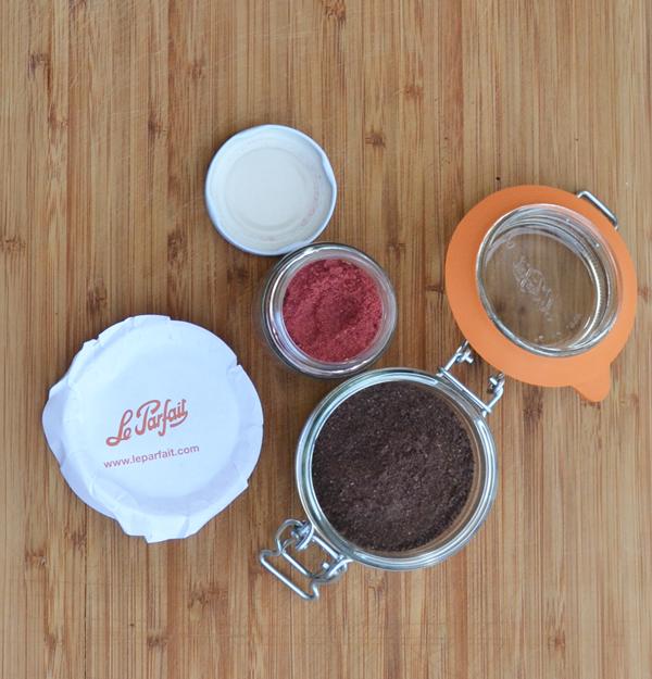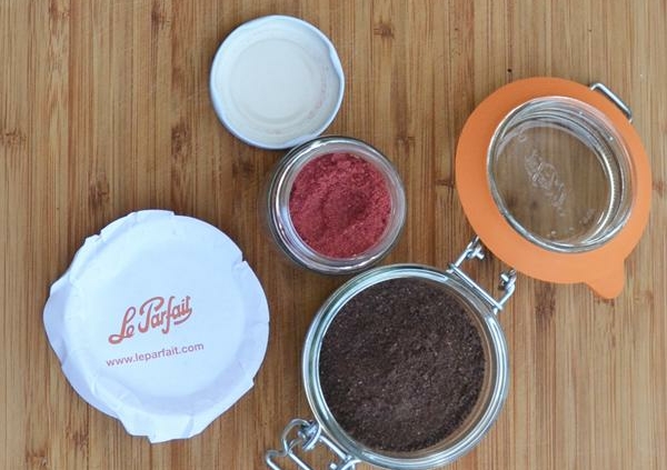 Bewaar fruitpoeder altijd in een weckpot die luchtdicht afgesloten kan worden. Ik heb de Le parfait weckpotten gebruikt van 125 ml.