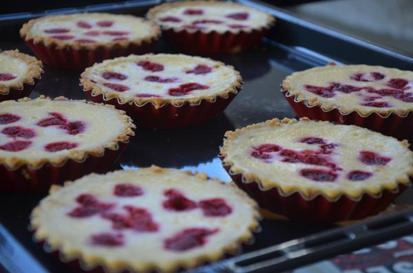 Gerrit is weer aan het bakken. Vandaag waren het frambozentaartjes met petit beurre koekjes in 8 zanddeegvormen van Tefal van 11 cm diameter. Je kunt ipv 100 gram suiker in dit recept ook 10 gram stevia gebruiken. Wij hebben diepvries frambozen gebruikt omdat deze een stuk goedkoper zijn maar je kunt natuurlijk ook frambozen uit eigen tuin of verse frambozen gebruiken.