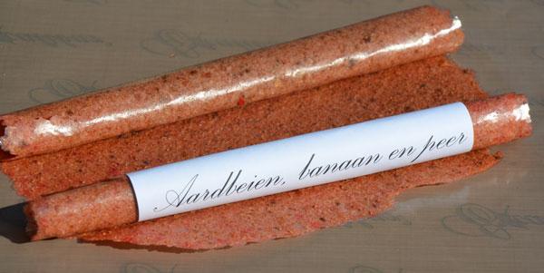 Dit fruitleer is eenvoudig te maken als je eens een paar aardbeien,  een banaan en een peer overhebt.
