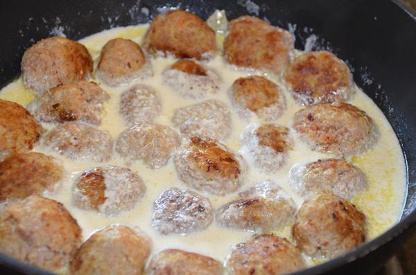 • Breng de kokosmelk of room, water, azijn, laurierblad en zeste van citroen in een kookpot aan de kook. Zet het vuur laag, voeg de gehaktballetjes toe en laat dit 20 minuten koken op een laag vuur.