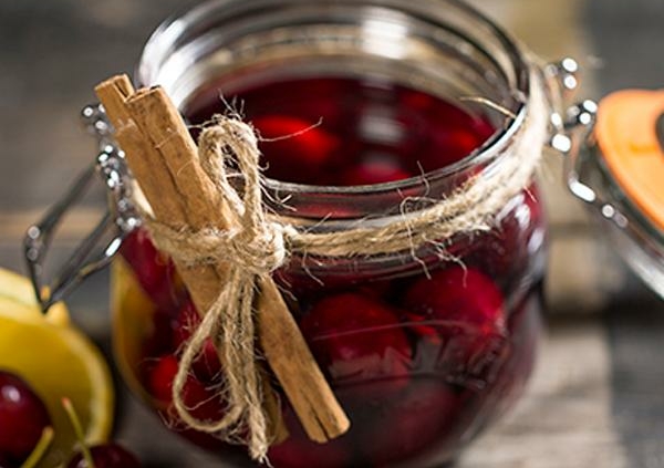 - Schep de kersen en het eventueel opgevangen vocht in gesteriliseerde weckpotten. Blijf bij het vullen 2 cm onder de rand. Voeg een stukje vanillestokje toe in elke pot.