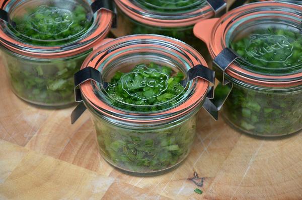 Invriezen van het loof doen wij in weckpotjes van 80 milliliter. Deze zijn niet te groot en u kunt heel gemakkelijk elke keer de hoeveelheid die u nodig heeft uit het weckpotje halen.