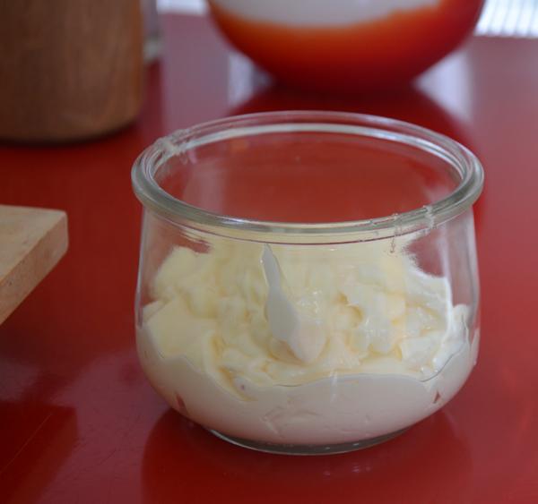 Heel gemakkelijk mayonaise maken? In 30 seconden tover je een zelfgemaakte mayonaise op tafel en het is ook goedkoop; onze kostprijs voor 330 ml was: 0,42 euro. Je hebt er wel een staafmixer voor nodig en moet ervoor zorgen dat alle ingrediënten op kamertemperatuur zijn. Met deze mayonaise maak je gemakkelijk een tartaarsaus en een remoulade saus. Het recept is het basisrecept. Voeg naar eigen smaak wat extra citroensap, mosterd of suiker toe mocht je de mayonaise wat zuurder, pittiger of zoeter willen. Wil je de mayonaise lang houdbaar maken? Fermenteer de mayonaise dan.