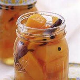 - Snij de pompoen in blokjes van 1 cm en voeg ze samen met het kaneelstokje aan het kokende water toe. Kook het geheel totdat de pompoenen enigszins gaar zijn maar laat ze niet te zacht worden. Giet het kookvocht af en laat de pompoen afkoelen. Als u de pompoenen wilt wecken bewaar dan het kookvocht. De pompoenen zijn lekker als bijgerecht bij de warme maaltijd.