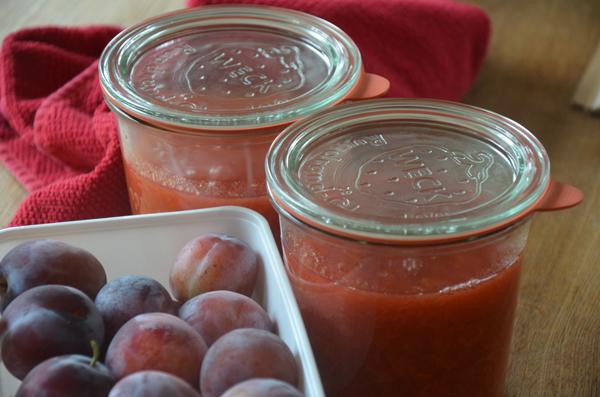 - Breng het pruimensap aan de kook en vul gesteriliseerde weckpotten. Blijf bij het vullen minimaal 2 centimeter onder de rand.