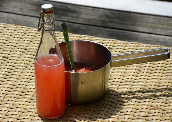 - Tip: Bewaar het overgebleven sap in goed afsluitbare flessen en serveer het als heerlijke rabarberlimonade.
