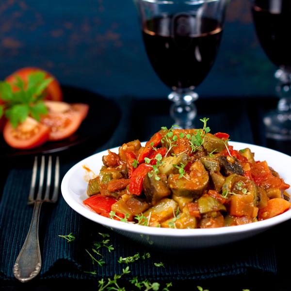 - Kook de ratatouille nog 10 minuten voor gebruik!