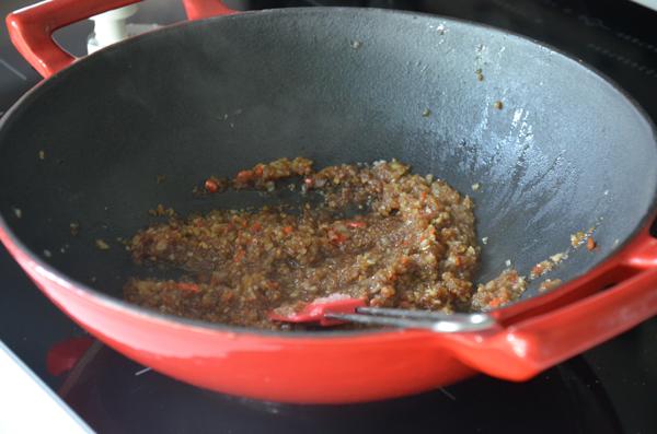 Roer in een aparte kom 1 eidooier met een paar eetlepels van de hete rijstepap los en meng dit door de rijstepap. |