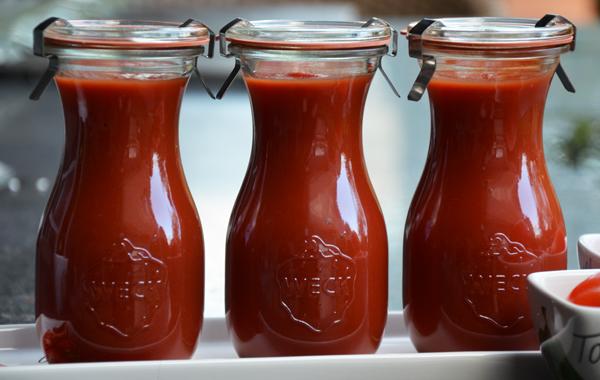 - Vul gesteriliseerde sapflessen tot 2 cm onder de rand met de pizzasaus. Weck de sapflessen gedurende 30 minuten op 90 graden.