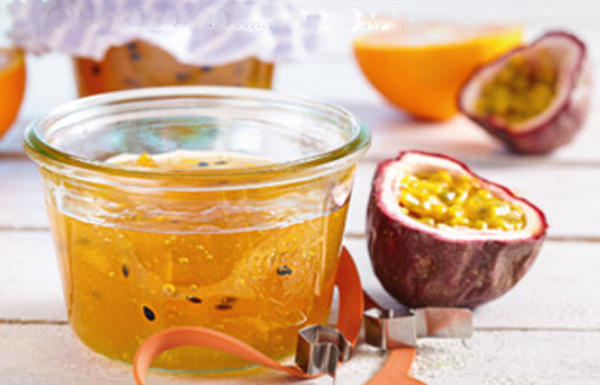 - Snijd de passievruchten doormidden en lepel het vruchtvlees eruit. Voeg het vruchtvlees toe aan de kookpot.