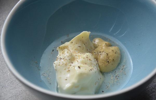 - Voeg alle ingrediënten samen in een schaaltje en roeren maar. Klaar is uw slasaus!