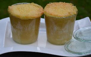 Wij serveren deze uiensoep in weckpotten met een heerlijk krokantje op!