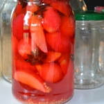 - Zeef de siroop door een fijne zeef en verwarm opnieuw. Giet het kokende mengsel in de voorbereide glazen potten, die nog wat warm moeten zijn. Laat alles goed afkoelen.