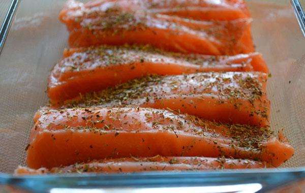 - Leg de zalmmoten bovenop de visbouillon en bestrooi ze rijkelijk met Provençaalse kruiden. Zet de zalm in de oven voor 30 minuten op 160 graden. Draai na 15 minuten de zalm een keertje om. De benodigde tijd zal een beetje afhankelijk zijn van de dikte van uw zalmmoten.