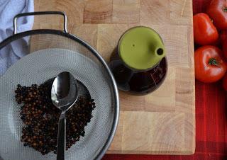 - U kunt voor de sier wat peperbolletjes onder in het olieflesje bewaren. Spoel dan de peperbolletjes af met wat water zodat ze mooi zuiver zijn.