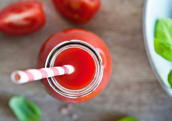 • Doe de tomaten en het water in de pan en kook het sap voor 15 minuten. Duw de gekookte tomaten door een vergiet waar een neteldoek in ligt en vang het sap op. TIP: Maak van het restant tomaten dat overblijft in uw vergiet een tomatenpuree. Mix daarvoor het restant tomaten fijn in een blender.
