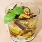Meng de aubergines met de wijnazijn in een kom. Laat dit 15 minuten rusten.