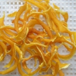 Zet de citroenschillen in de oven. Zet na 5 minuten de deur van de oven op een kiertje. Gebruik eventueel een houten lepel om de deur open te houden. Laat de citroenschillen zo nog 3 uur drogen tot ze hard en droog zijn.